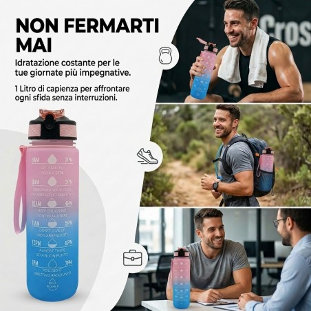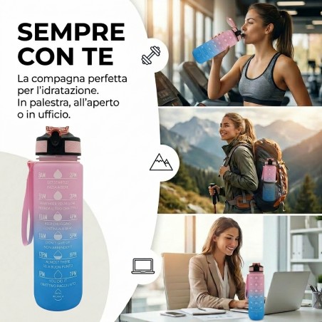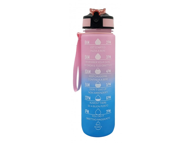 Borraccia Motivazionale 1L Rosa e Azzurro: design sfumato con frasi motivazionali per un’idratazione costante. Perfetta per sport, studio e lavoro.