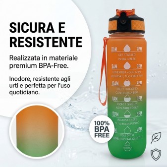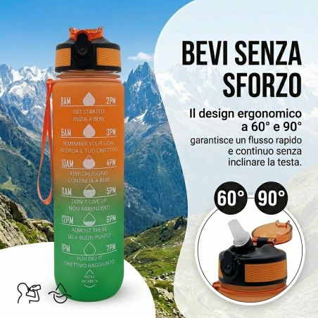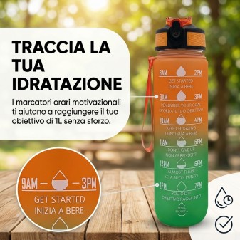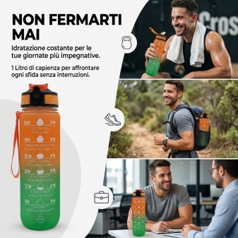Borraccia Motivazionale 1L Arancio e Verde – Idratazione Smart