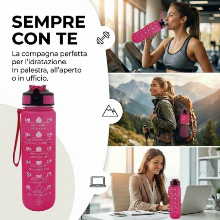 Borraccia Motivazionale 1L Rosa – Idratazione Quotidiana