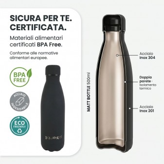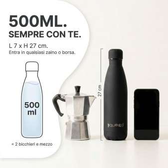 MATT Bottle: Borraccia Termica Acciaio Inossidabile Doppia Parete BPA Free Finitura Soft Touch Opaca Nera 500ml