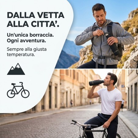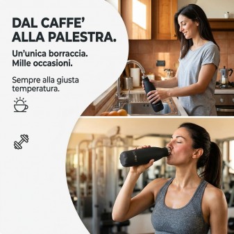 - DOPPIA PARETE IN ACCIAIO INOSSIDABILE: La struttura con interno 304 ed esterno 201 mantiene le bevande calde o fredde per ore, offrendo prestazioni termiche costanti in ogni stagione dell'anno.
