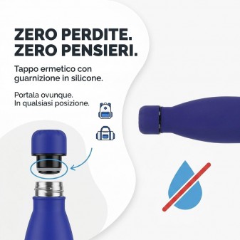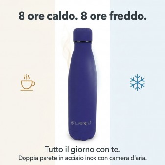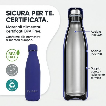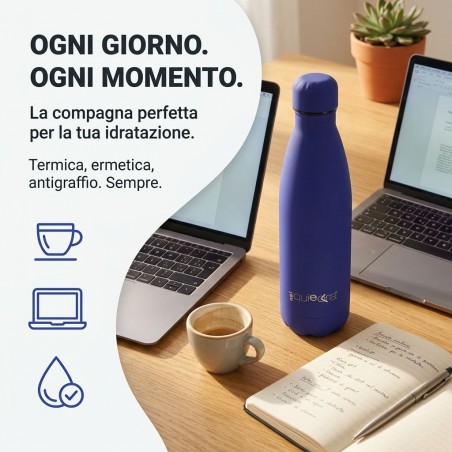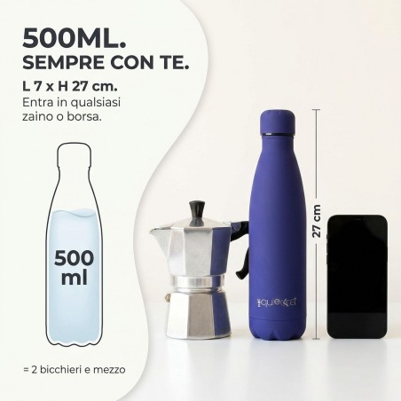 MATT Bottle: Borraccia Termica Acciaio Inossidabile Doppia Parete BPA Free Finitura Soft Touch Opaca Blu 500ml