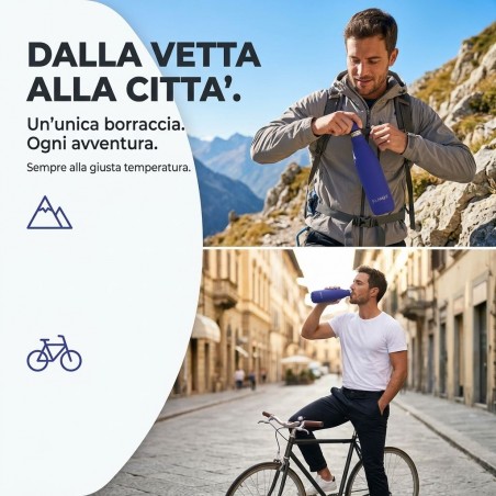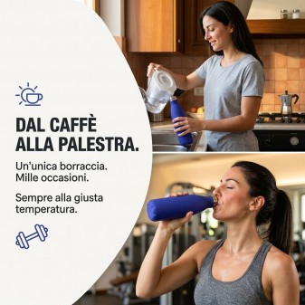 - DOPPIA PARETE IN ACCIAIO INOSSIDABILE: La struttura con interno 304 ed esterno 201 mantiene le bevande calde o fredde per ore, offrendo prestazioni termiche costanti in ogni stagione dell'anno.