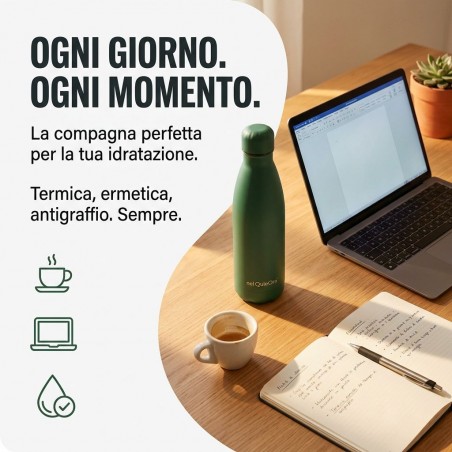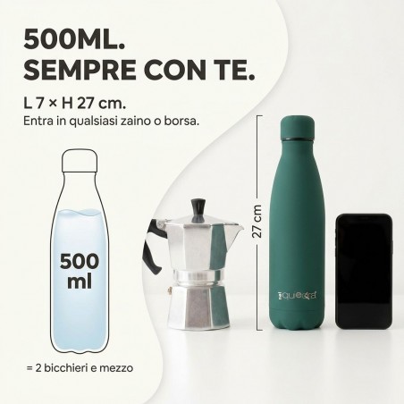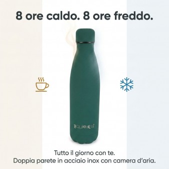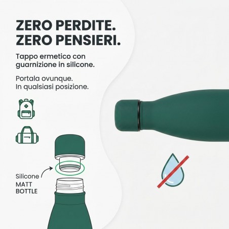 MATT Bottle: Borraccia Termica Acciaio Inossidabile Doppia Parete BPA Free Finitura Soft Touch Opaca Verde 500ml