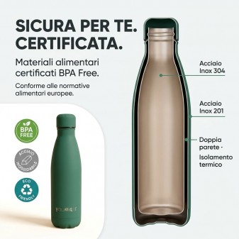 - CERTIFICATA BPA FREE E CONFORME ALLE NORMATIVE ALIMENTARI EUROPEE: Realizzata con acciaio inossidabile alimentare certificato, è priva di sostanze nocive e adatta all'uso quotidiano da parte di tutta la famiglia