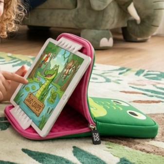 Una simpatica custodia a forma di coccodrillo che protegge il tablet e diverte i più piccoli! Morbida, imbottita e resistente agli urti, è perfetta per tablet fino a 10”.