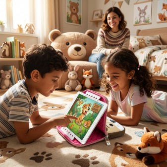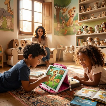 Compatibile con tablet fino a 10" (dimensioni massime 18,5 x 24 cm), è perfetta per l’uso scolastico o domestico, con un look allegro e rassicurante per ogni bambino.