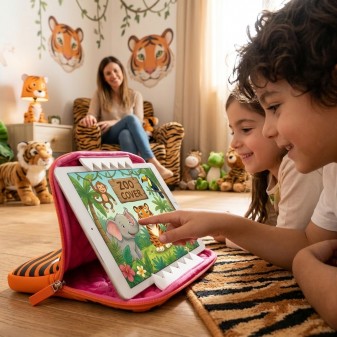 Questa custodia per tablet unisce protezione e divertimento in un solo prodotto. La cover è realizzata con materiali resistenti e morbidi al tatto, pensata per offrire sicurezza durante l’uso da parte dei bambini.
